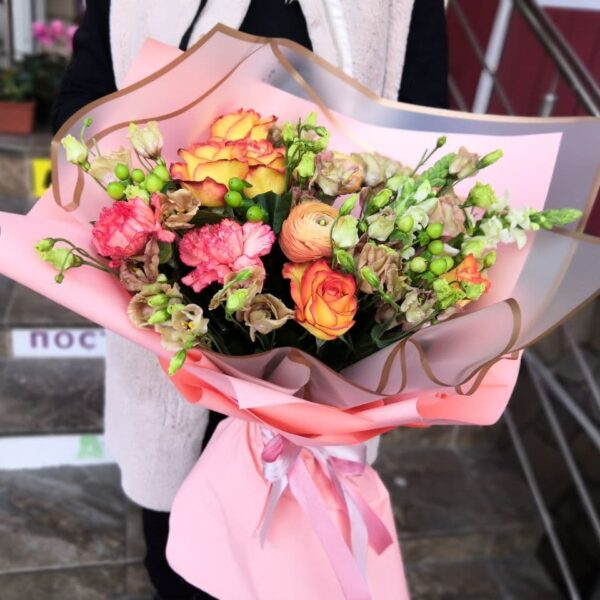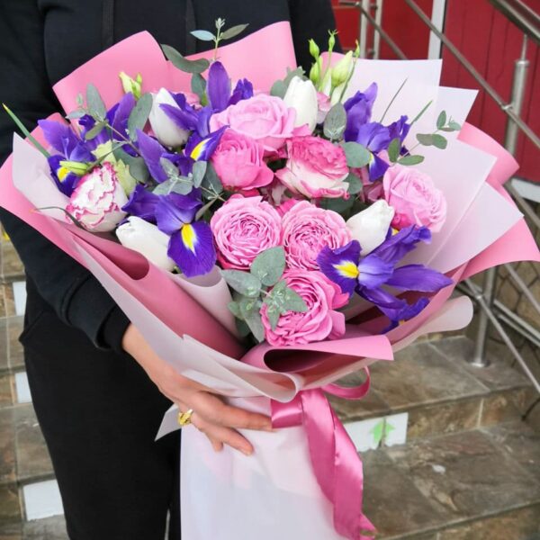 Букет из пионовидных роз и весенних цветов