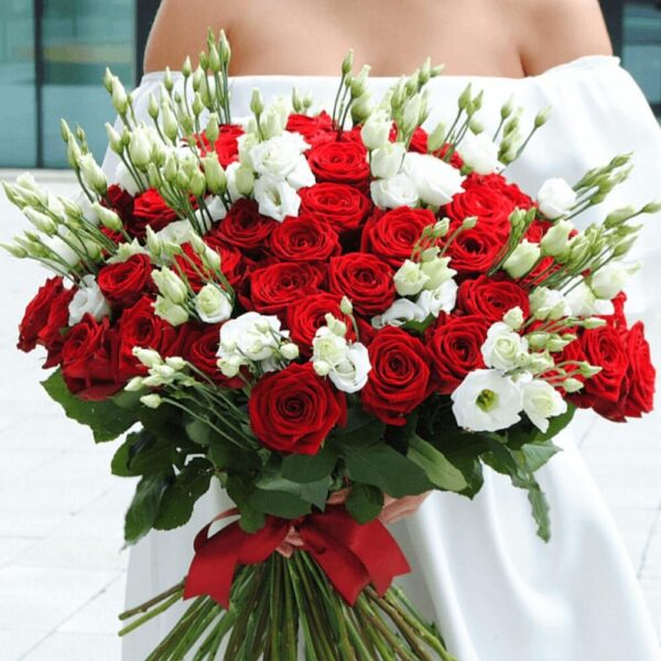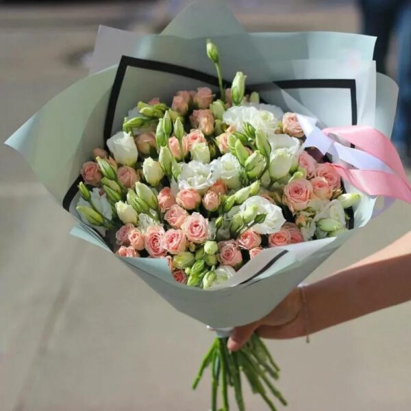 Букет из роз и эустомы