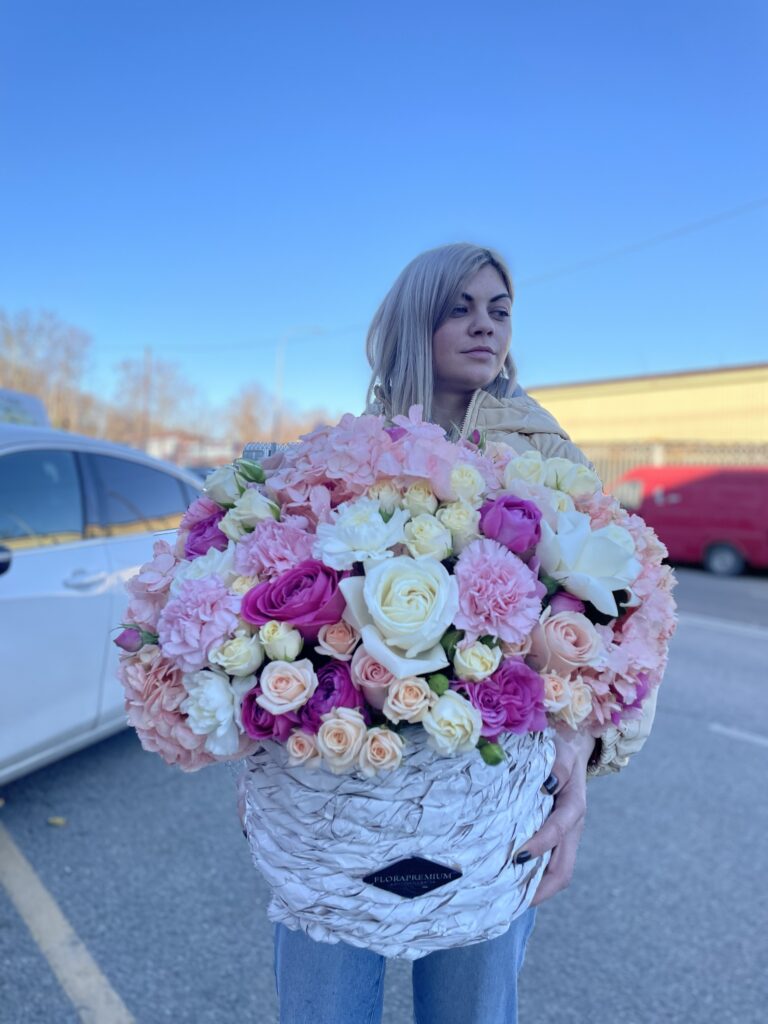 Упакуем букет в стильную фирменную коробку с крышкой, с полной защитой от перепадов погоды (жара, мороз, ветер или дождь — заказывайте букет в любую погоду)! Букет транспортируется в специальной силиконовой вазе, содержащей воду и встретит Вас свежестью и тонким ароматом. В комплекте с букетом мы прилагаем инструкцию по уходу за букетом и средство для продления жизни цветов. Получайте максимум от букета!