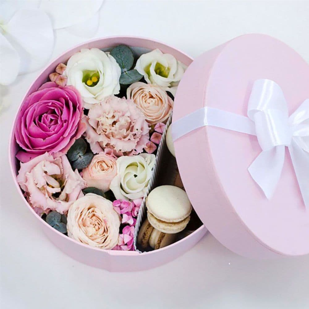Бокс из цветов и макаронсов