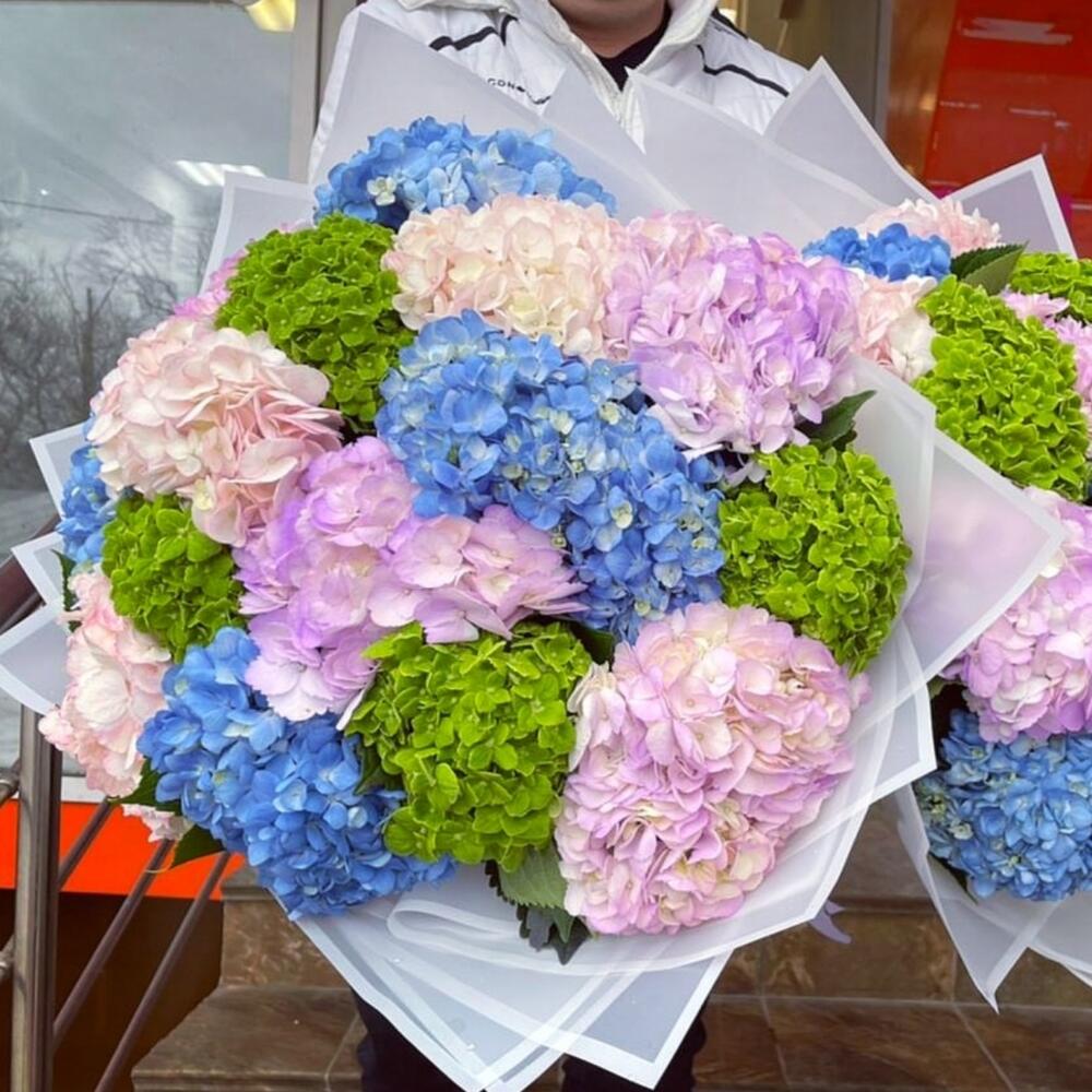| Описание | Букет из гортензий нежных зефирных оттенков смотрится очень эффектно. Гортензия поражает нежностью, обилием расцветок и невероятным объемом. Она роскошна и всего 5 веток создают очень приличный букет, а 15 веток — это огромный букетище) 🤩😍 |