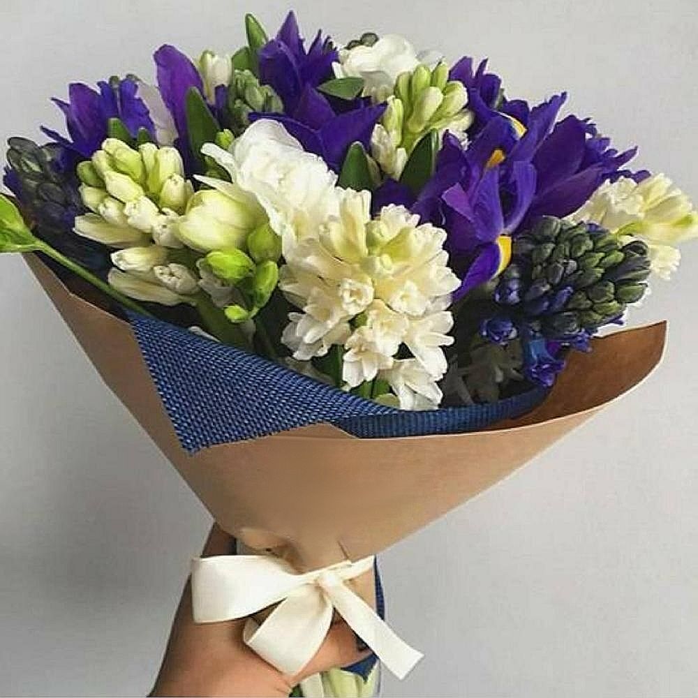 Букет из гиацинтов с ирисами